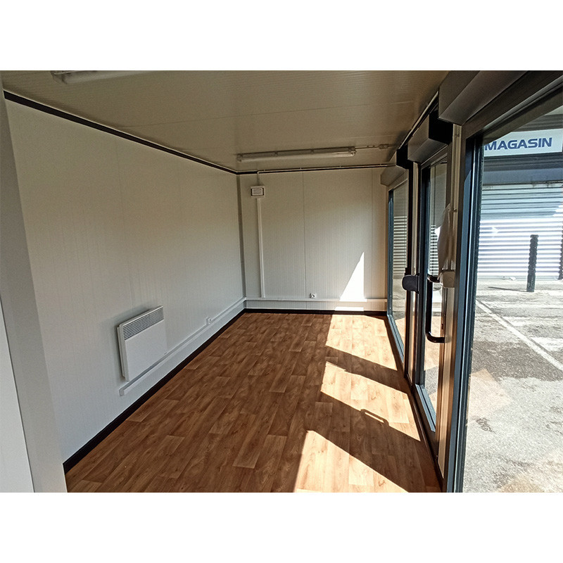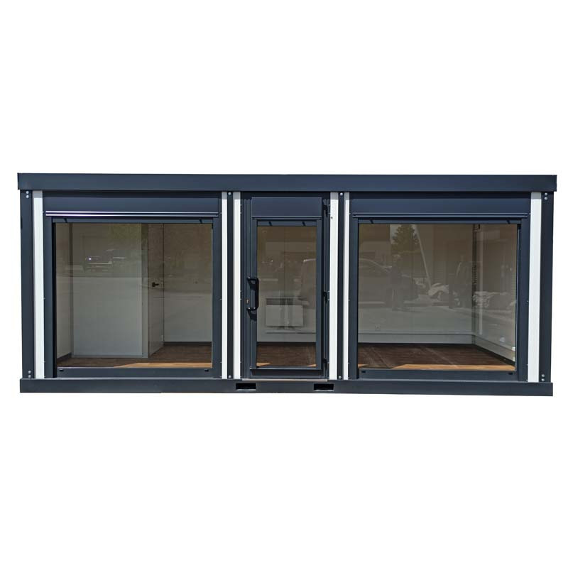 Notre série « Renforcée » présente un meilleur confort d’utilisation par rapport à la série standard, grâce à sa structure renforcée, à son isolant épais et son vitrage 4+4 mm, ainsi qu’une isolation thermique et phonique améliorée. Par conséquent, ces modules sont plus adaptés pour une utilisation à destination d’espaces de vente ou de bureaux.