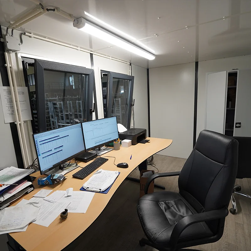 Des conteneurs bureaux à montage rapide pour toutes sortes de situations. Les conteneurs bureaux de Snelbouwkantoor peuvent être utilisées comme bureaux temporaires ou permanents sur les chantiers et les zones industrielles. Ils peuvent également être utilisés pour les écoles et les chantiers de construction, de manière temporaire ou permanente. De plus, ces conteneurs bureaux sont entièrement modulaires et peuvent être librement étendus et connectés. Le cadre de la fenêtre est anthracite RAL 7016.