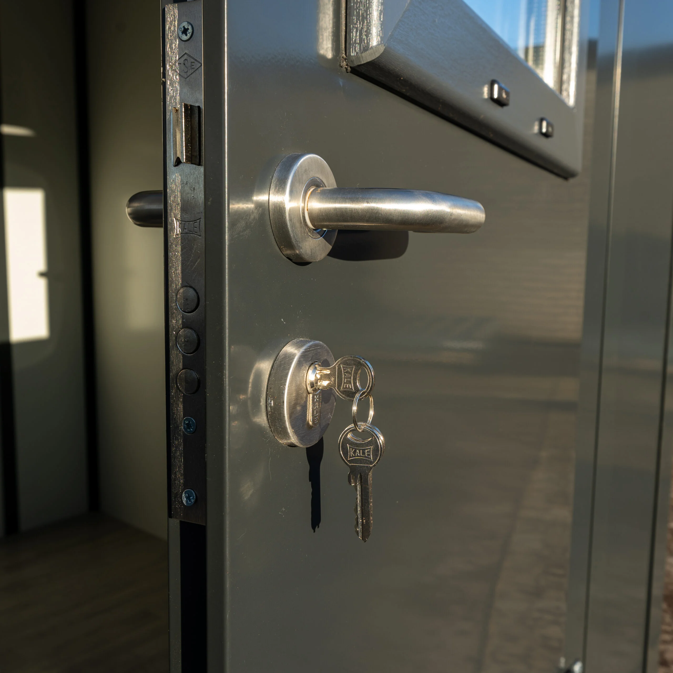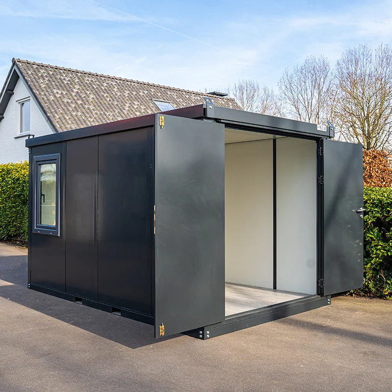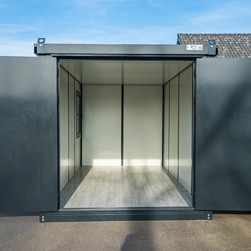 Des conteneurs bureaux à montage rapide pour toutes sortes de situations. Les conteneurs bureaux de Snelbouwkantoor peuvent être utilisées comme bureaux temporaires ou permanents sur les chantiers et les zones industrielles. Ils peuvent également être utilisés pour les écoles et les chantiers de construction, de manière temporaire ou permanente. De plus, ces conteneurs bureaux sont entièrement modulaires et peuvent être librement étendus et connectés. Le cadre de la fenêtre est anthracite RAL 7016.